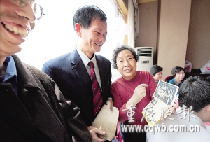 64級1班學生、在渝中區統戰部工作的王有惠為老師獻上一副題字,5班一位男學生奉上一幅書畫。“這不是當年的窮孩子馬慶嗎?”王忠篤說,馬慶父親早亡,母親獨自供養馬慶三兄弟,生活很困難。學校想辦法給他提供了每月8元的助學金,老師們也幫他湊生活費!靶iL,我剛從渝中區商委主任和總工會主席的位置上退下來,以后會常來看您!61歲的馬慶含淚道。