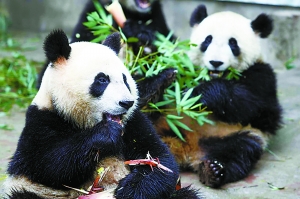 在進京的6只大熊貓中,只有華奧和錦意在雅安。早晨9時,當記者來到位于保護中心豹子山時,看到華奧慢悠悠地走出獸舍,看到記者的照相機鏡頭,它突然閃到了木樁后,直等到飼養員劉娟把它拽出來。雖然華奧是個“小男孩兒”,但吃起東西來卻很斯文,別的大熊貓都或躲或臥,它卻端端正正地坐在那,像個“淑女”。住在科研樓的錦意正好與華奧相反,雖是個女孩,卻很淘氣,先是盯上了記者的包,又抓又咬,之后又抱著記者的腿啃個不停,就像個淘氣的小男孩兒。