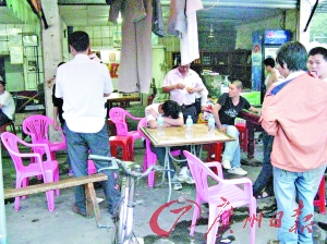 本報訊 (記者曾毅攝影報道)昨日下午,在順德杏壇立滔制衣有限公司門外的小賣部里,還有幾十名工人聚集在此,而這張小方桌,正是佛山市第十三屆人民代表大會代表、杏壇立滔制衣有限公司工會副主席游名勝倒下的地方,4月23日晚上8時45分,一名20多歲的年輕男子,突然用一不知名的利器刺中游名勝右腹部,他隨后被緊急送往杏壇醫院,當晚10時多,經搶救無效死亡。