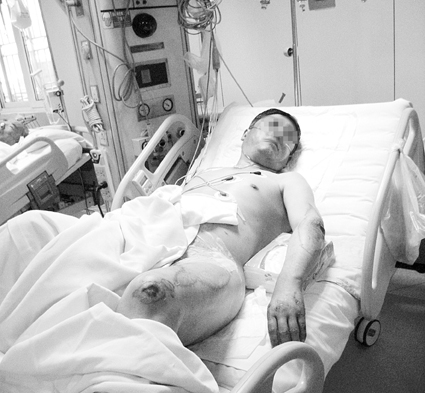 圖為躺在病床上的袁芝國(guó)。黃學(xué)民攝