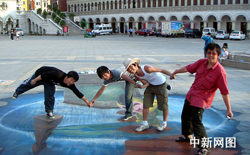 據悉,“城市立體畫”在國際上已經流行多年了,但在中國國內并不多見。4月25日,南京玄武湖公園展出了30多幅城市立體畫,一名男士將腳伸進了“鱷魚”口中,逼真的效果甚至引得路人為這名男士捏了把汗。隨后,城市立體畫迅速風靡網絡。韓承告訴記者,在杭州,畫立體畫的不多,但感興趣的不少,“希望明年能在動漫節上組織一次立體畫的比賽,爭取讓這個新創意能真正流行起來。”