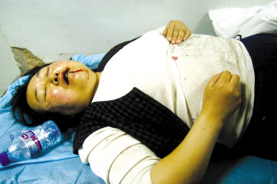 4月29日下午6時許,把女士向本報電話求助說,她姐被臨夏路城管執法中隊的執法人員打傷,被120救護車送到醫院救治,城管執法人員拒付醫藥費,請本報采訪此事。隨后,記者來到了蘭大二院急診科。樓道內,39歲的把存楓靜靜地躺在病床上,滿嘴血跡,身上有多處淤青。她哭泣著告訴記者,當日下午,她在妹妹的瓜果店門口賣草莓和小西紅柿時,臨夏路城管執法中隊的執法人員直接過來打翻了她的果籃,草莓和西紅柿撒了一地。為此,她要求執法人員賠償,結果其中一名執法人員朝她的臉上就是一拳。把存楓傷心地說:“不就是他們前一天讓我撤攤,我沒聽嘛,他們就這樣打我……”