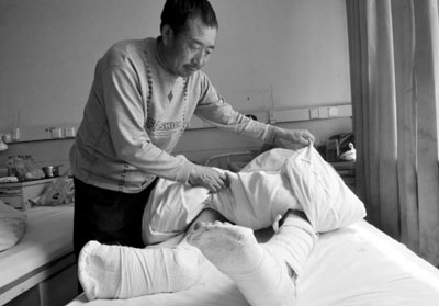 高煥東醫(yī)生告訴記者,小陳的腰1、2、4節(jié)椎體壓縮性骨折,左小腿粉碎性骨折,右足3、4、5節(jié)蹠骨骨折,右跟骨骨折,現(xiàn)在還在進一步治療恢復中。而小陳的父親告訴記者,目前已花了5萬多元錢,向親戚朋友借遍了錢,已經(jīng)無力繼續(xù)治療了,只能提前出院。