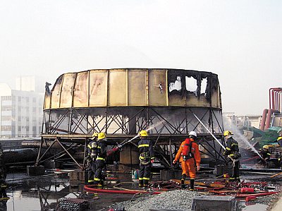 在救火過程中,附近一在建的高層建筑有多名工人仍在施工。當地政府初步懷疑,起火和這一高層建筑施工有關。“施工電焊會冒出火花,被風吹到冷卻塔上,引起大火”。起火原因正在進一步調查中。(記者黃玲攝影報道)