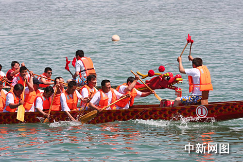 中新網(wǎng)和碩5月28日電(記者 汪金生)中國最大內(nèi)陸淡水湖博斯騰湖今天被喧鬧的鑼鼓聲和歡呼聲感染,當(dāng)?shù)匾砸粓龃笮妄堉圪悜c祝傳統(tǒng)節(jié)日端午節(jié)。
