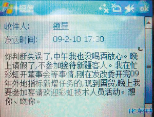 帖中寫道:樓主數日前拾得手機一部,經查看后發(fā)現,機主為江蘇某市經濟開發(fā)區(qū)一位王姓女局長。該女局長同時與多位男士長期保持著曖昧關系。隨帖還貼出了多張手機中的短信翻拍圖片,清晰可見其曖昧文字內容,同時也可發(fā)現其發(fā)短信的時間跨越了2006~2009年。