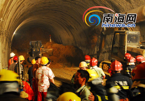 在施救現場,三亞市長市長助理、公安局局長王少山接受南海網記者采訪時說,由于塌方面在離隧道口400米的隧道深處,塌方處工作面狹窄,只能容下一臺挖掘機,邊挖掘還繼續有土塌現象發生,影響到救援的速度,現已約運出了3000余立方沙土。據現場消防官兵及其他施救人員反映,現已經能隱隱約約聽被困人員發出來的求救聲音。