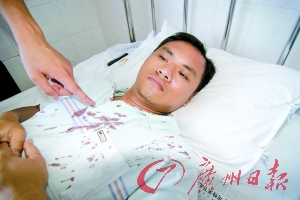 昨日,記者在化州人民醫(yī)院外二科見(jiàn)到了正在這里療傷的受傷教師。其中一名黃老師告訴記者,當(dāng)時(shí)他與李老師等人負(fù)責(zé)在校門口值守,突然聽(tīng)到李老師“你們想干什么?”的喊聲后,發(fā)現(xiàn)歹徒正揮棍朝李老師猛打,他即沖上去試圖阻止,結(jié)果頭部被打了一棍而昏倒地上。