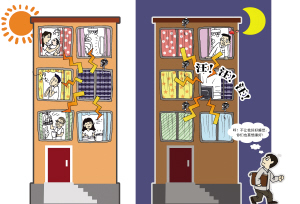 “誰叫他們不讓我有好覺睡。”4—3的住戶名叫陳強(化名)稱,兩個多月前,他被調派上夜班,每晚10點上班,第二天清晨才下班回家。回家后,陳強拖著疲憊的身軀剛一躺下,就聽到一些住戶家傳來的電視聲、廣播聲、唱歌聲、小孩的哭聲,這一切吵得陳強無法安睡,幾乎要在床上折騰幾個小時后,陳強才能勉強入睡。