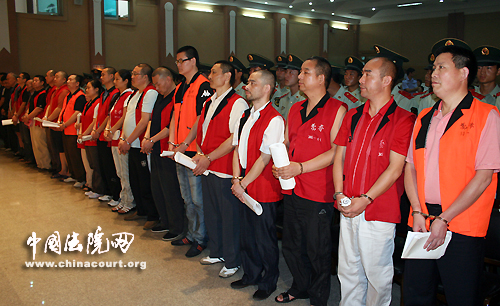 早晨8點左右,唐亞南等23名原審被告人由警車押送到庭,八點半左右,開始開庭審理。審判長宣布開庭后,唐亞南等23名原審被告人被帶入庭審現(xiàn)場,站到法庭的被告席上。法官當庭宣讀了一審判決書,一審判決以集資詐騙罪判處原審被告人唐亞南死刑,剝奪政治權(quán)利終身,并處沒收個人全部財產(chǎn);以集資詐騙罪判處原審被告人丁魁元死刑,緩期二年執(zhí)行,剝奪政治權(quán)利終身,并處沒收個人全部財產(chǎn);以集資詐騙罪判處原審被告人李全才、鄧書杰、彭標、李凱無期徒刑,剝奪政治權(quán)利終身,并處沒收個人全部財產(chǎn)。其他15名原審被告人分別以隱瞞犯罪所得罪、非法吸收公眾存款罪、集資詐騙罪被判處三年至十五年不等的有期徒刑;另兩名原審被告人被判非法吸收公眾存款罪,因情節(jié)輕微,免予刑事處罰。一審宣判后,唐亞南等19名原審被告人提出上訴。