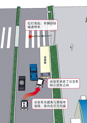 司機(jī):一是對著我行駛的車道撞過去,前面就是輛奔馳;要不然,就卡在公交車和貨車中間那個位置。我選擇了后者。