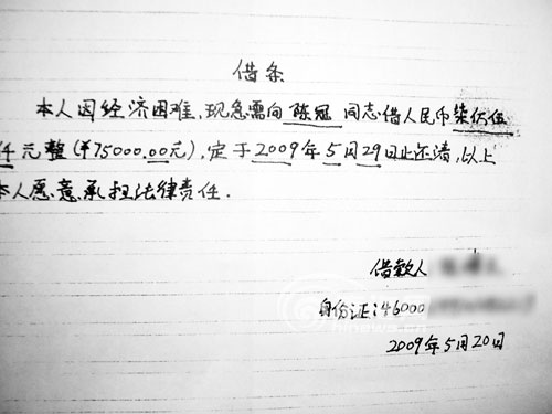 一會,小鋒看到阿東將他的朋友阿冠從另一個包廂里請進來。“小兄弟,我可以借給你3.5萬元,但10天后你要還給我7.5萬。”阿冠拍了拍小鋒的肩膀,小鋒左右為難,想拒絕,但是又害怕對方不讓自己離開。 “好,我同意。”別無選擇的小鋒咬了咬牙,他按照對方所念的話寫下了借條。為取信于小鋒,阿冠還當面將3.5萬元付給阿東。