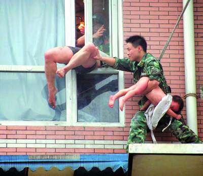 張婆婆講,8時30分許,她就看見該男子抱著娃娃坐在窗臺上,好多次都欲往下跳,她的心一直懸著。男子不時掙扎,讓娃娃的整個上半身向下傾斜,每當這時,娃娃都會用自己的小手使勁抓住窗戶,驚得圍觀群眾齊聲尖叫。