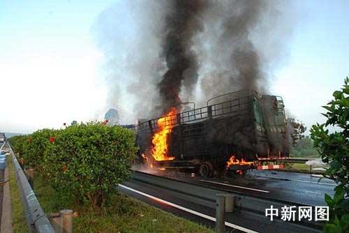 據江門市交警部門稱,27月8日05時20分,一皖籍大型貨車運載PVC管沿開陽高速公路往陽江方向行駛,行至開陽高速公路恩平市大槐路段時,與前方運載甲醇的一粵籍的重型半掛牽引車發生碰撞,碰撞后,兩車迅速著火燃燒,皖籍大型貨車車上三人當場死亡。