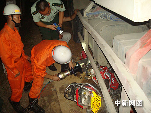 事故發生后,松滋市公安、消防、交通、公路等部分迅速趕赴現場施救,晚9時30分,消防官兵利用消防液壓剪成功將摩托車車身破開,9時35分,被困者被成功救出。
