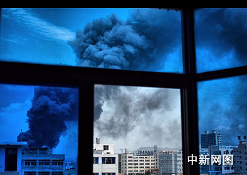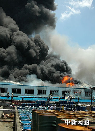 倉庫內裝有大量成品貨物,貨物燃燒產生了大量濃煙,整個事故現場濃煙滾滾。據一位現場知情者透露,濃煙之大,前所未有,“整個溫州市區幾乎都能看見火災上空的濃煙。”加上現場風向變化不定,空氣中彌漫著刺鼻的化工氣味。