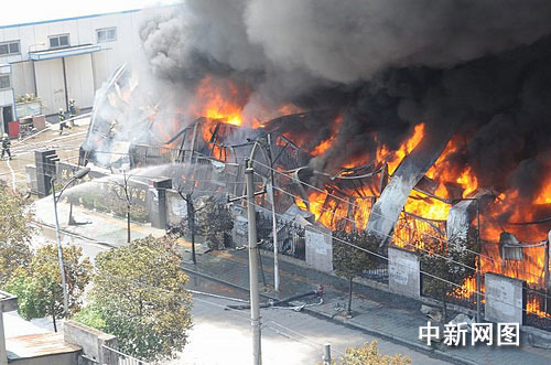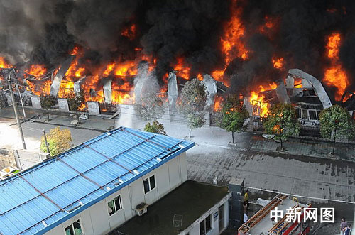 中新網溫州7月19日電(記者 江耘 通訊員 徐行號 姜嬋娟 劉榮平) 2009年7月19日10時55分許,浙江溫州龍灣區農業開發區文匯路19號的愛好筆業倉庫發生火災。記者發稿時,大火已經燒了7個小時,過火面積約達3000平方米,200余名消防官兵依舊無法徹底降伏火魔。