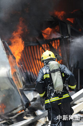 如果要盡早控制火勢,必須打通坍塌倉庫內部的通道,讓水流能夠射到里面。情況迫切,消防戰士掄起鐵錘,不顧被大火燒烤后的高溫,強行將倉庫的墻體打通。然后,消防官兵冒著倉庫二次坍塌的危險以及高溫,鉆進倉庫內部對里面的火情進行撲救。