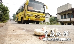 昨日上午11時,記者前往現場發(fā)現。車禍發(fā)生在水土鎮(zhèn)藥王街入口處的“鑫旭酒樓”門前,肇事車當時由水土鎮(zhèn)往金刀峽方向行駛。盡管車禍現場已被交警部門處置,肇事轎車被拖走,但現場仍可見大量血跡遺留地面,一雙沾有血跡的女式白色涼鞋靜靜地躺在馬路中間。旁邊圍墻上,肇事轎車將其撞開了一個籃球大小的窟窿。