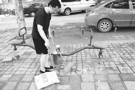 昨日上午11時,記者趕到鄭上路省紡機社區時,看見張月正在清掃小區健身區的地面(如圖)。巡防隊員朱幸說,張月的事見報后的第二天,他和隊友郭長河就成了張月家的常客,找他談心,經多次做工作,張月才同意到醫院治療。7月22日,在鄭州市第八人民醫院治療了一個月的張月,康復出院回家。到家后,張月仍不愿出門,朱幸和郭長河又多次找張月聊天。社區主任王曉波也主動到張月家,每天上班時,他都要把張月叫到社區,讓他幫忙干點零活。經過溝通和交流,張月變得開朗了許多,成了一名編外保潔員。王曉波說,社區為張月申請辦理了低保,讓他享受每月275元的最低生活保障。 □記者李嵐實習生吳瓊文首席記者閆化莊圖
