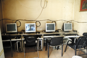 按照王先生的指引,昨天上午,記者來到了位于新中村的這家底商。只見大門上除了網吧兩個字之外,并沒有具體的招牌。走進屋內,50多平方米的室內擺有30多臺電腦。兩名20歲左右的男青年坐在控制室里負責收錢。此時,一名中年男子走了進來,對控制室內的一名黃頭發青年說道:“網管,幫忙給上一下。你教過我的,可我沒記住!闭f完,兩人就很有默契的一起來到了靠近角落的一臺電腦旁。
