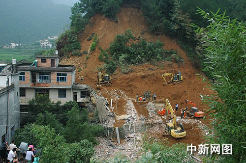 8月13日下午,清涼峰鎮(zhèn)出現(xiàn)暴雨天氣,16時至18時雨量達(dá)到88毫米。當(dāng)晚23時30分,暴雨引發(fā)該鎮(zhèn)林竹村梓棚塢發(fā)生重大山體滑坡,造成一間三層民房被掩埋,多名群眾被困。