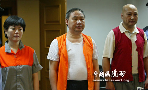 手里拿著各種軍事院校招生表格,向落榜考生家長承諾可以幫助孩子上軍校,保證有軍籍、包分配,可是學生卻一直無法入學。今天上午,北京棋幫投資管理有限公司法定代表人周濤(女,46歲,上圖左一)、河北籍無業人員張克文(男,45歲,上圖左二)、河北籍無業人員胡國玲(男,56歲,上圖右一)三人因涉嫌詐騙罪在北京市第一中級人民法院受審。