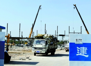 昨日10時許,朝陽區天澤路東,曾經繁華熱鬧的星吧路餐飲街被圍在新砌的白粉墻內,拆成了一片空曠地,僅剩的一棟2層小樓露出了鋼骨架,十幾名工人扛著大錘、電焊槍在作業。幾錘下去,一片墻體就塌了下去。一名工地施工人員證實,這就是“老外釘子戶”的餐吧,“等了兩三個月,終于拆了。”他說,預計當日可基本拆除。