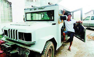 一說到“悍馬”,人們馬上會想到那擁有“越野之王”美譽的龐然大物,可瀏陽文家市鎮文華村28歲的花炮機械設計師楊倫偉,著迷于“悍馬”的彪悍外形,突發奇想,與徒弟一起造出了一輛“山寨悍馬”,惹得周圍鄰居連連稱奇。