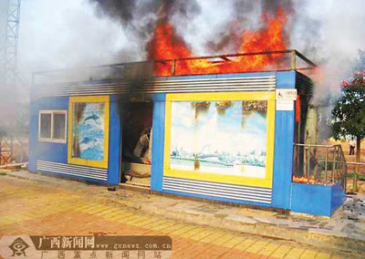 9月1日下午,欽州市二橋頭旁一間環保公廁因地下管道燃氣泄漏引發大火,兩名正在如廁的市民被燒傷,相關部門緊急處置兩小時,將險情排除。