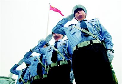 記者發現他們的警服上比其他交警多了一條銀色綬帶。盧偉忠說,國慶節即將臨近,天府廣場作為成都的一面旗幟,每天都添加著喜慶的元素。佩戴綬帶除了配合天府廣場的喜慶氛圍,更主要的代表著他們比其他路口的交警責任更重大!皬牡谝淮奶旄畭忛_始,執法都是最嚴格、最鐵面無私的。”盧偉忠說,“隨著國慶節的到來,我們的查緝力度將不斷增大,希望市民前來監督!保ㄌ旄鐖 丁寧)