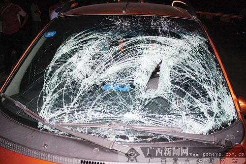 在羅城交警大隊事故中隊的電腦上,記者看到了事故圖片,肇事車的擋風玻璃已經支離破碎,上面的一個大洞清晰可見。據辦案民警介紹,其中一名死者的頭部直接撞擊在玻璃上,造成顱骨骨折身亡。