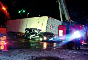 昨日凌晨2時15分許,順義區通順路米各莊路口,一輛集裝箱式大貨車與一輛商務轎車相撞后側翻,將轎車壓在貨箱下。事故導致轎車中6名乘客死亡,1名乘客受傷。目前,市政府、市公安局等已介入調查。