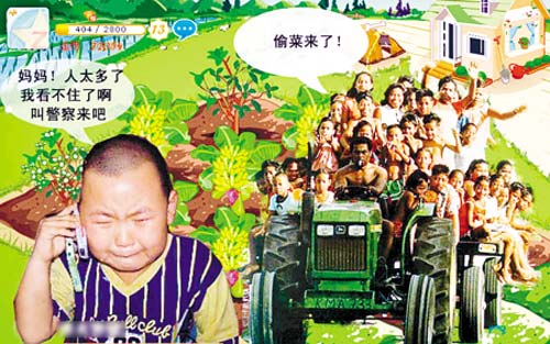 “開心農場大壞蛋,培養網上盜竊犯,不睡覺,不吃飯,睡到半夜到處串,他攀墻,我跳院,月黑風高好作案,人手一張麻袋片,這拔蔥,那拽蒜,茄子土豆偷成片,誰家菜地都不管,偷完馬上往家竄,一到家里傻了眼,自家蔬菜全不見。”這是在網上廣為流傳的“偷菜”順口溜,因其膾炙人口而受到“偷菜者”的熱捧。