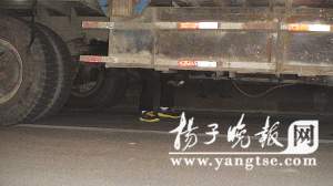 當晚7點左右,記者趕到新北區惠山路某工地門口,只見一輛安徽牌照卡車停在路邊,周圍有很多市民,車底下豎著兩條人腿,原來是一名男子貓著腰坐在車底下。一名交警正彎著腰勸說卡車底下的人,可該男子就是不愿鉆出來。