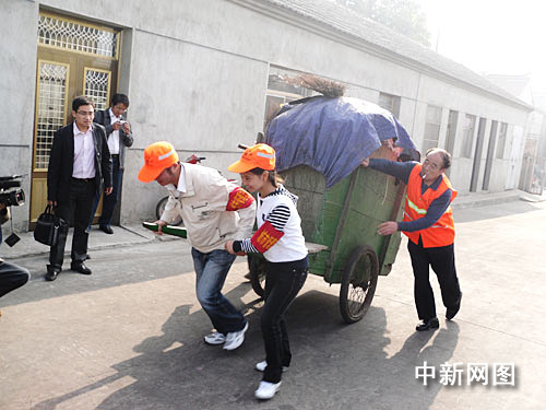 中新網鹽城十月二十六日電 (于從文 王慧)一九五九年十月二十六日,國家主席劉少奇親切接見掏糞工人時傳祥。二〇〇九年的今日,鹽城市開展首屆環衛工人日。六十名大中專院校優秀在校大學生、學生干部、入黨積極分子青年志愿者走上街頭,甘當一天環衛工人。