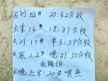 由于年齡大了,記不住那么多時(shí)間,于是每星期日兒子返校前就會(huì)給于女士寫一張時(shí)間表,里面有收菜的時(shí)間、喂魚(yú)食的時(shí)間、還有上別的同學(xué)地里偷菜的時(shí)間,以方便于女士操作。