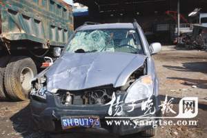 昨天上午在停車場,記者見到了肇事車輛:牌照為蘇HBU790雙環(huán)越野車,前擋風玻璃半邊差不多被撞碎,上面還有一個大洞,直徑為49厘米,并且從碎裂的玻璃縫隙中提取了數(shù)根頭發(fā)。從車內(nèi)名片盒內(nèi),記者找到一張杜軍本人的名片,上面寫有“志圣科技(廣州)有限公司蘇中地區(qū)經(jīng)銷部工程師”字樣。據(jù)楚州區(qū)公安局交警大隊辦公室主任朱士能介紹,昨天上午杜軍血檢結(jié)果顯示,他屬于醉酒駕車,應負事故全責。警方同時已安排人員到杜軍家讓他們盡快先拿出10萬元來做死者家人的安撫工作。一名不愿透露姓名的民警告訴記者,從事故發(fā)生時間以及杜軍的血檢結(jié)果來看,杜軍應該是中午喝的酒。他同時告訴記者,該車在事故發(fā)生前還有一起闖紅燈,兩起違停行為。