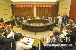 昨日,報(bào)考市交委、市國土房管局、民盟重慶市委三個(gè)機(jī)關(guān)單位的31名考生,在江北區(qū)行政中心參加了“陽光面試”,接受了旁聽代表的現(xiàn)場(chǎng)監(jiān)督。