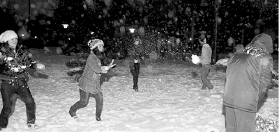 下午5時,停了稍許的雪又開始飄落,記者如約趕到綠城廣場噴泉邊,左瞅瞅右瞅瞅,只見一位美女手拿昨日的《鄭州晚報》,上前聯(lián)絡(luò),原來是網(wǎng)友“瓦妮莎”。其他人呢,再一看旁邊積滿雪的草地上不少人已經(jīng)不顧嚴(yán)寒和風(fēng)雪打起了雪仗,雖然沒有拿著“標(biāo)志”,但明顯看出是光棍族的人。