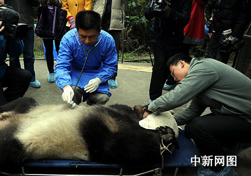 11月24日,來自澳大利亞阿德萊德動物園獸醫專家與四川臥龍中國保護大熊貓研究中心專家,在碧峰峽基地為即將啟程赴澳大利亞參與合作研究的“網網”和“福妮”做了出發前的綜合性體檢。專家們通過對“網網”和“福妮”進行血液、體格、五官、消化系統、被毛系統、臟器B超等全面的身體檢查,初步確定兩只大熊貓體格健壯、發育良好、非常健康。