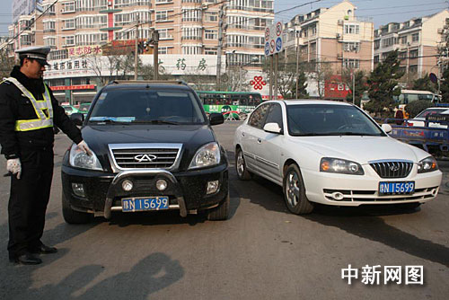 當日上午9時10分,正在文化路崗執勤的交警二大隊民警李磊看到一中年人急匆匆向他跑來,“民警同志,快攔住這輛等紅燈的奇瑞車,它掛的牌照和我的一樣,是一輛套牌車。”民警朝當事人的手指的方向望去,果然見一前一后停著兩輛轎車,前車是一輛黑色奇瑞,后面是一輛白色現代,而兩車的號牌都是予N15699。