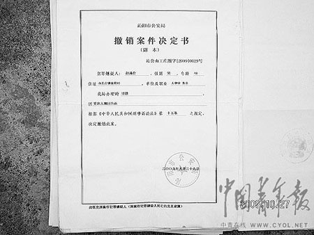 9月3日晚,張小傳、趙有福拿著“沁陽市看守所釋放證明”回到家中。至此,張、趙二人在沁陽市看守所關押了518天。記者在張小傳得到的“沁看釋字【2009】214號”沁陽市看守所“釋放證明”上看到,放他出來的原因是“取保候審”。