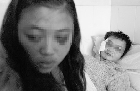 昨日下午,郫縣人民醫院外科病房內,面容憔悴的吳慧明靜靜地躺在床上,他右耳處粘滿紗布,雙眼青紫腫脹。病床邊,左眼青紫紅腫的王英蘭,正輕輕地按摩著吳慧明剛剛打完點滴的左手背。四目相對間,滿是愛意。情侶間的溫馨一幕,令病友們感動。但他們并不知道,幾天前吳慧明竟然遭遇了“似乎死過一次”的痛苦……
