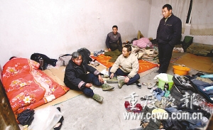工人關(guān)洪云說,大家以為在11月工程完工后就能結(jié)算工錢回家,都沒有準備在重慶過冬的衣物和鋪蓋。天寒地凍,工人們晚上睡覺不敢脫衣服。65歲的老工人朱云正感冒了,冷得瑟瑟發(fā)抖,由于沒錢治病,只能硬扛著。好心的工友們將兩床厚被子蓋在他的身上取暖,但他依然冷得發(fā)抖。