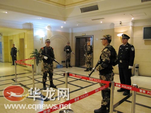 記者在法院現場看到,此次庭審安檢非常嚴格,總共有三道防線。第一道在在法院周邊50米左右,有交警戒嚴,社會車輛一律不得進入。第二道在法院樓下,已拉起警戒線,旁聽群眾、記者、律師等必須持有旁聽證或相關證件才能入內。第三道線在進入法院時,所有人員必須接受安檢,手提包全部寄存,手機、筆記本、相機等隨身物品均不得帶入法庭內。法院大門外和法庭門外均有特警持槍站崗,進入法院大樓內手機信號將會被屏蔽。