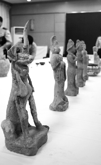 同時,民警還發現5人手里拿著的塑料編織袋內有十幾個帶濕泥土的陶人、陶馬。