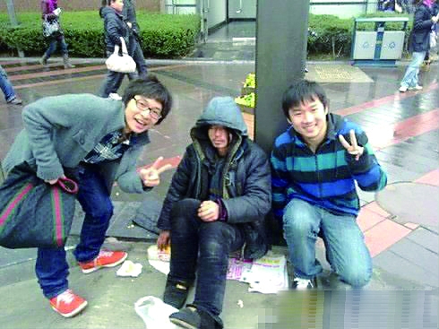 昨天(3日),網友們在東門口再也沒有見到“犀利哥”的身影,這讓許多關注“哥”的網友因為無意間給他造成傷害感到內疚。而昨天東方論壇上的一張照片更讓網友憤怒:兩個男孩一左一右在“犀利哥”旁邊擺出“v”字笑著拍的照片。網友們說,看了這張照片,感到寒心。