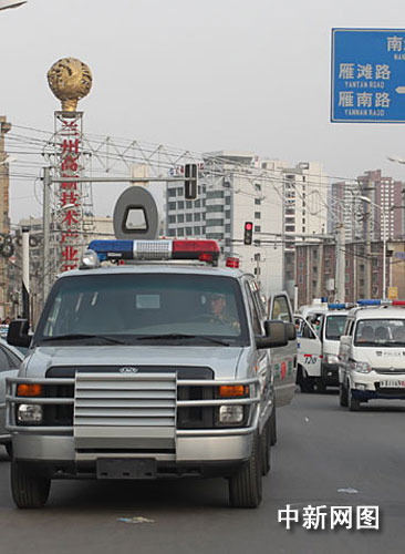 3月11日20時許,蘭州警方成功將一名持槍殺人歹徒擊斃。圖為公安和消防部門抵達現(xiàn)場。攝影:張玉璽