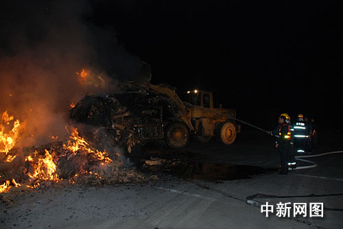 鏟車到位后立即半掛車車廂的紙板分步搬離車廂,消防隊(duì)員又進(jìn)行新一輪的出水滅火工作。消防隊(duì)員一直奮戰(zhàn)到晚上24時(shí),才將大火全部撲滅。據(jù)了解,高速公路的事故路段已在22時(shí)全面恢復(fù)通行。(完)